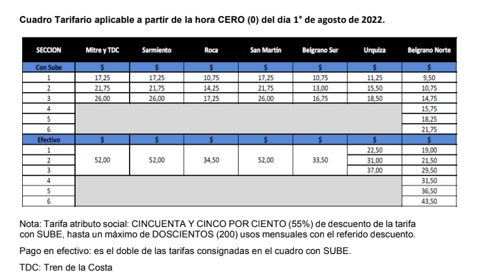 En cuanto a los ferrocarriles, el boleto mìnimo de la lìnea Roca costará $10,75, la segunda swecciòn $4,25 y la tercera, $17,25.