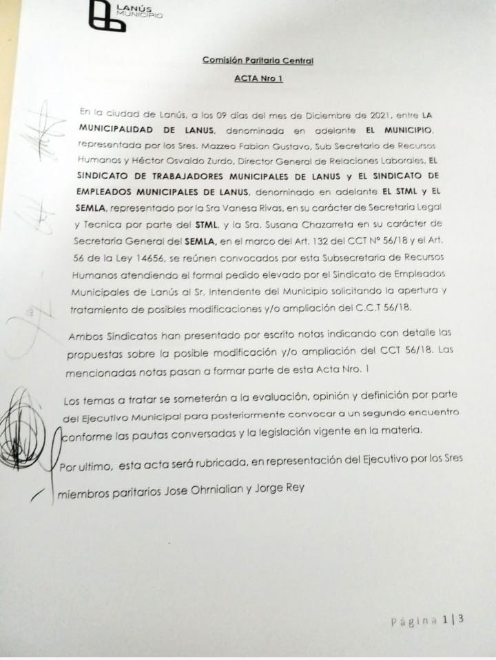 En efecto, con ese fin se reunieron ayer la Subsecretaría de Recursos Humanos del poder ejecutivo local, el Sindicato de Trabajadores Municipales de Lanús (SMTL) y el Sindicato de Empleados Municipales de Lanús (SEMLA)