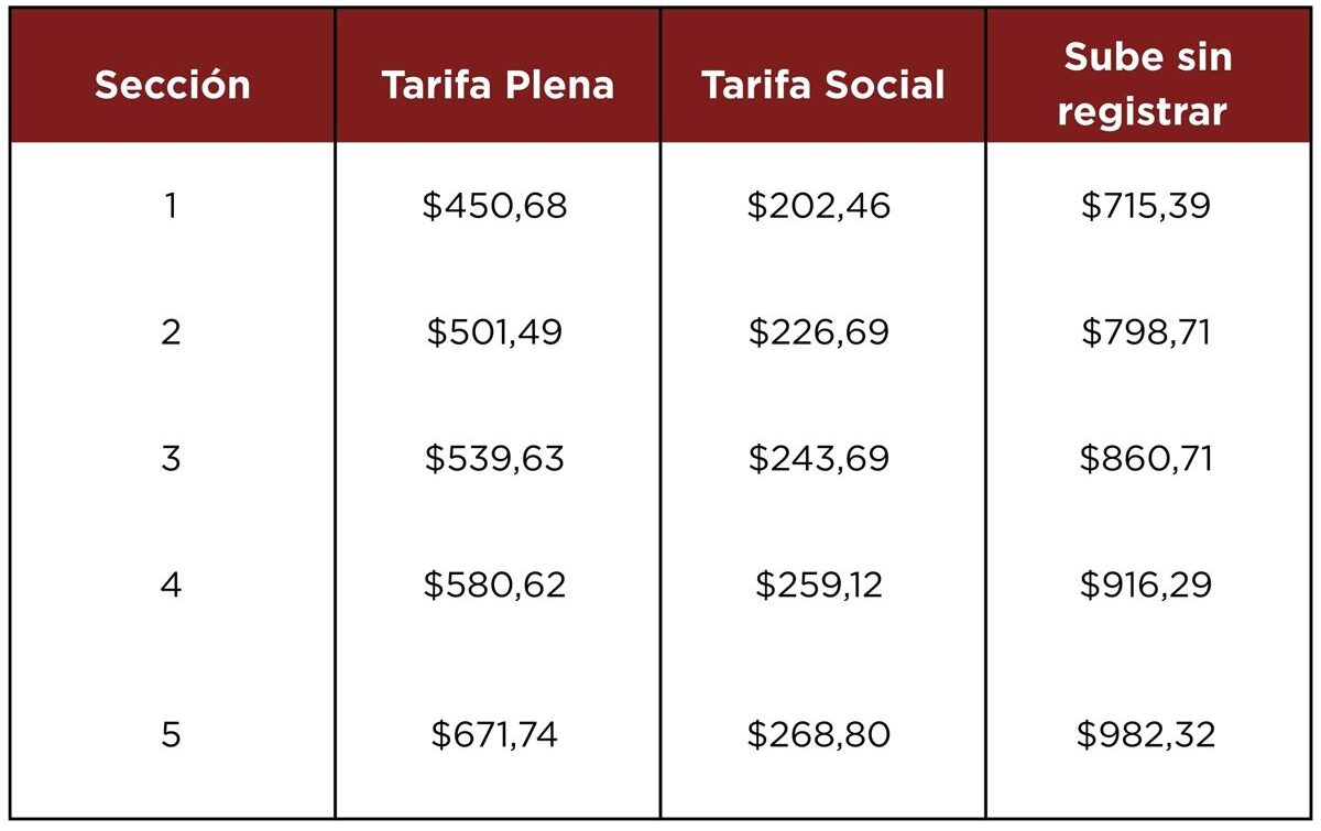 El detalle de los nuevos valores en CABA es el siguiente, tal lo informado por la Asociación Argentina de Empresarios del Transporte Automotor (AAETA)