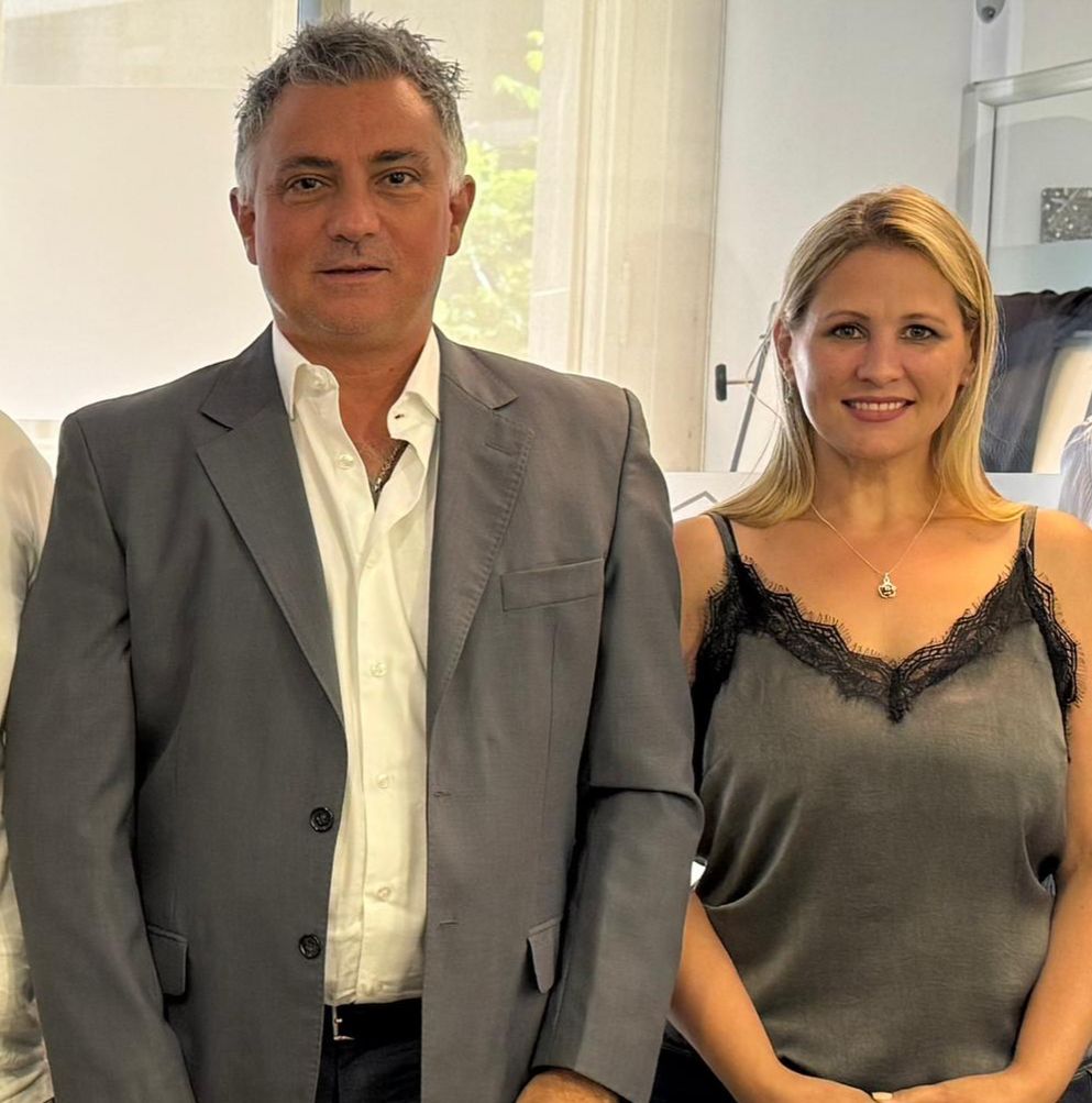 Patricia Werenicz, con Sebastián Pareja, presidente de LLA en Prov. Bs. As., tras sellar el acuerdo con UNO.